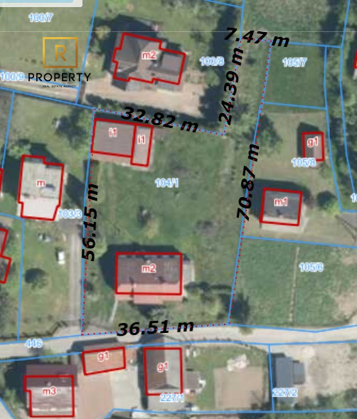 - Aktualnie działka zabudowana budynkiem jednorodzinnym oraz gospodarczym - możliwe wyburzenie