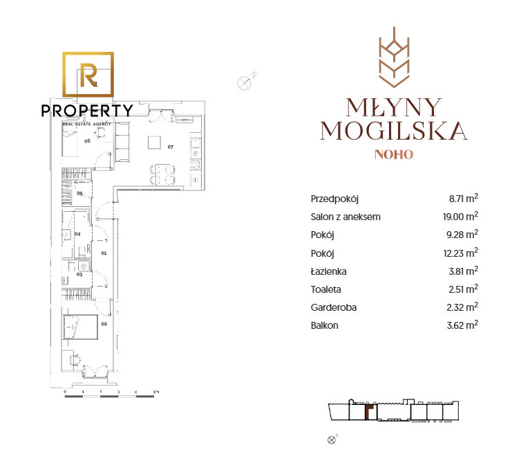 "Młyny Mogilska" is a prestigious investment located in a strategic point of Krakow, at Mogilska Street. This location guarantees excellent transport accessibility, allowing easy access to public transport, including tram and bus lines. The investment is located in close proximity to the Park of the Academy of Physical Education, which provides residents with the opportunity to experience nature every day and spend their free time actively. "Młyny Mogilska" is synonymous with luxury and comfort, an ideal place for people who value comfort and proximity to greenery and urban infrastructure.