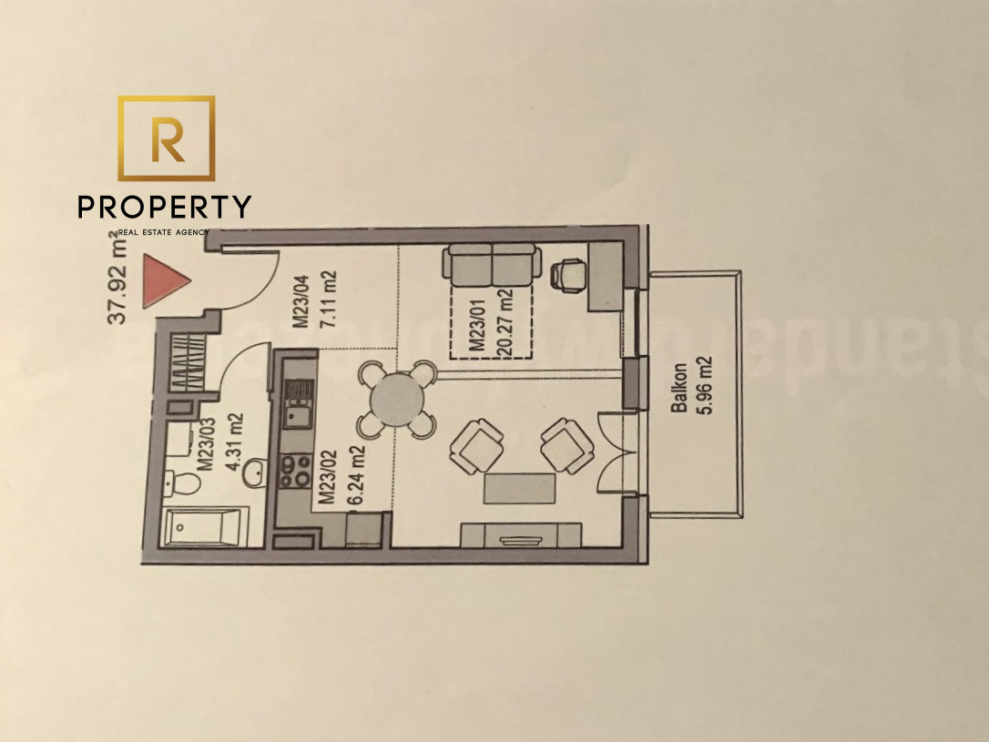 - Salon połączony z aneksem kuchennym,