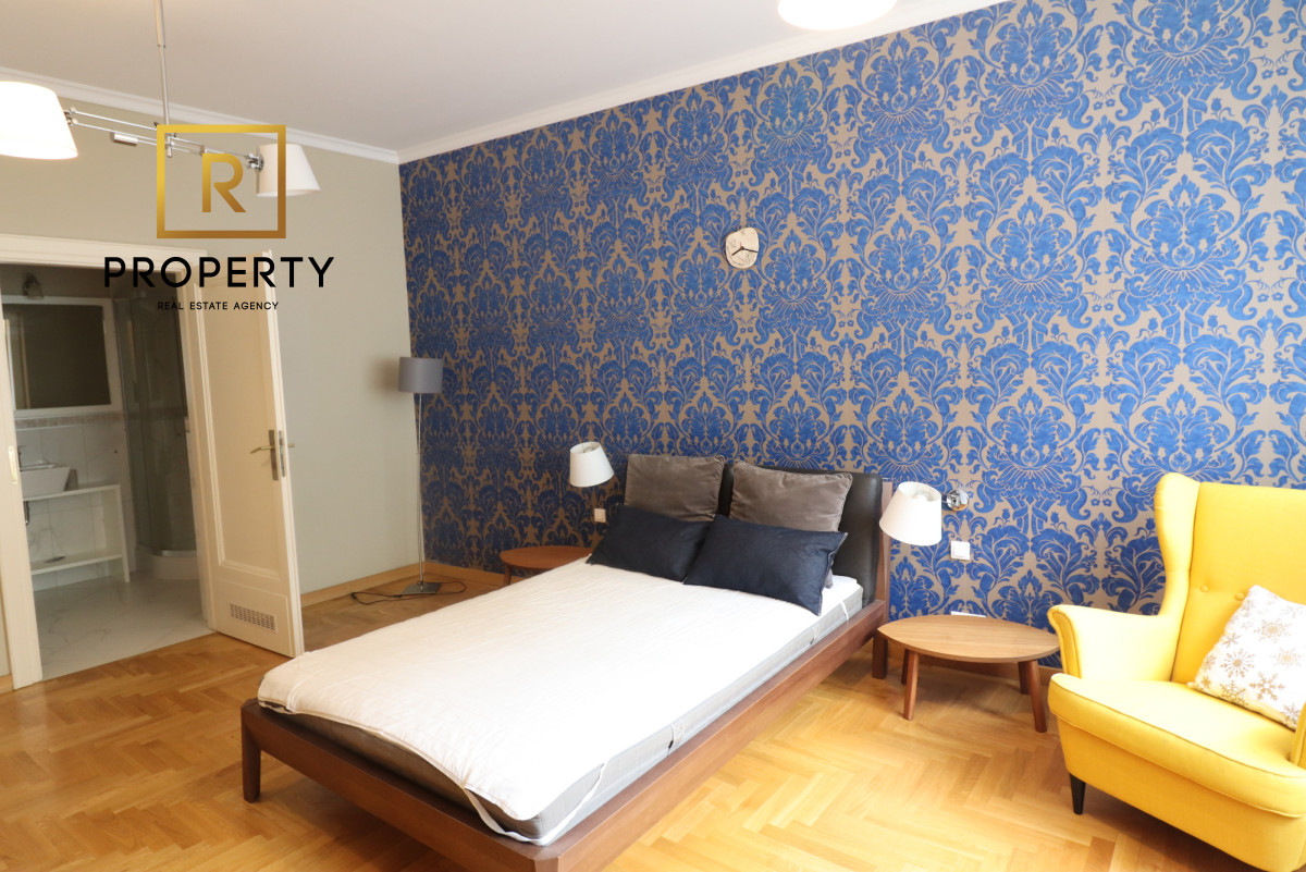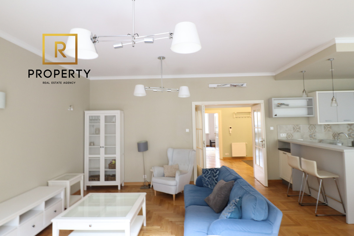 |R| Property is pleased to present a spacious 3-room apartment with an area of 124 m², located on the 1st floor of a beautifully renovated townhouse in the prestigious Sarego Residence, right in the heart of Kraków. The apartment is fully furnished and equipped, ready to move in immediately.