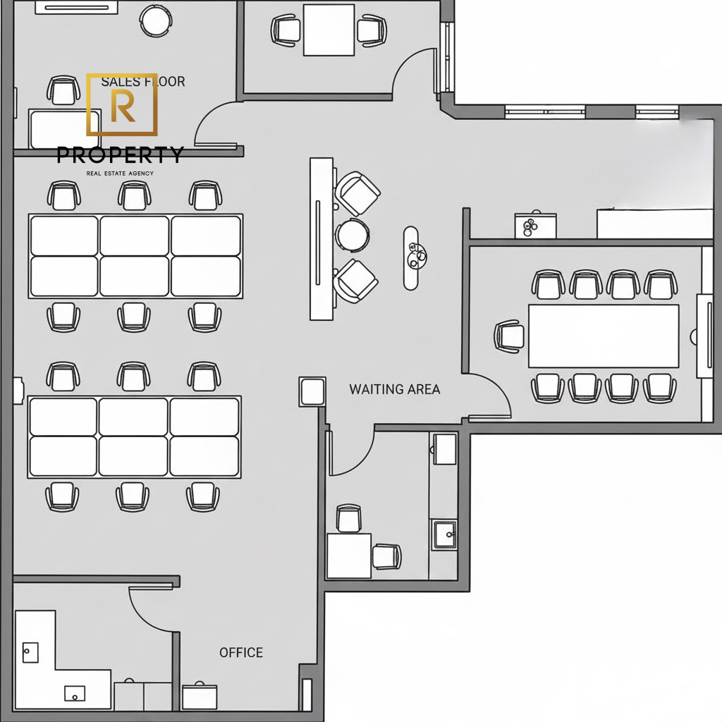 The rooms are well-shaped, well-lit, and provide a comfortable space for employees and clients.